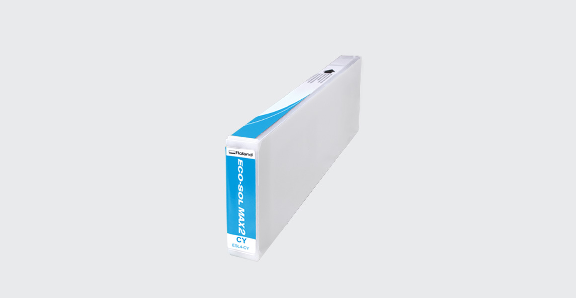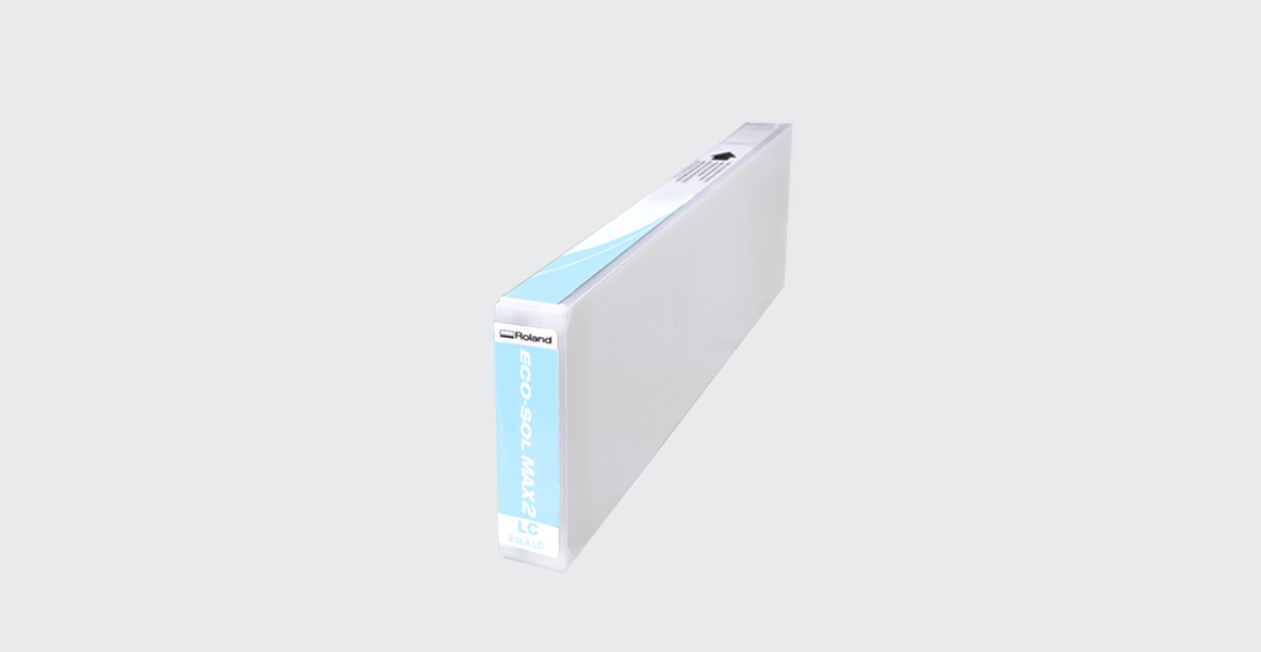 Tinta EcoSolMax 2 (7 cores – Cyan, Magenta, Yellow, Black, Light Black, Light Cyan e Light Magenta) de 440ml e Metallic e White de 220ml para impressoras Roland modelos XF-640, XR-640, VS-300i, VS-540i, VS-640i e RF-640.