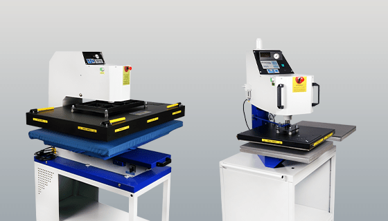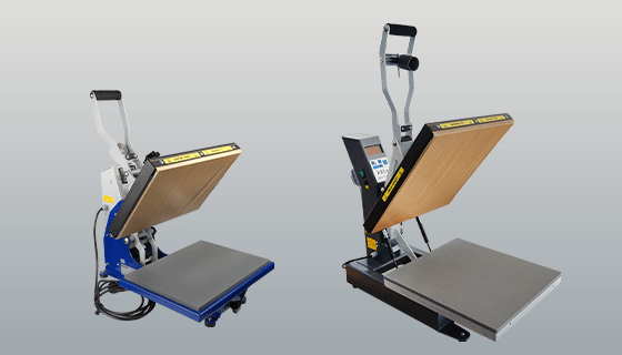 As prensas térmicas para bonés existem em versões manual e de abertura automática.